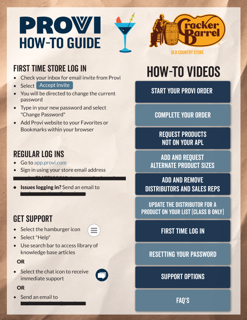 This job aid provides instruction and on-demand support to employees who use Provi, an alcohol distribution vendor.